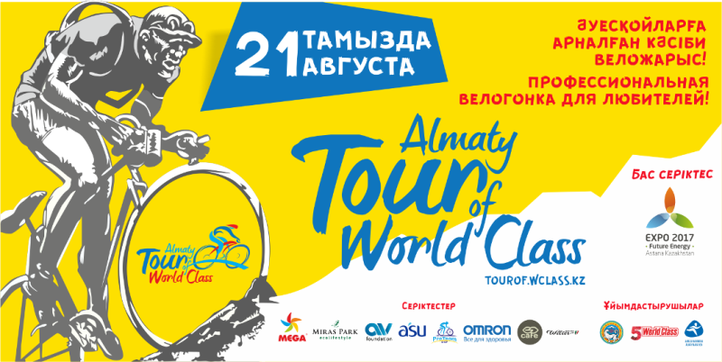 В Алматы 21 августа пройдет третья ежегодная профессиональная велогонка для любителей «Tour Of World Class Almaty 2016». Ее проведение приурочено ко Дню спорта Республики Казахстан, который отмечается в этот день.