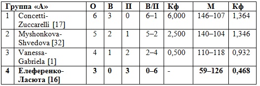 Елеференко/Ласюта — Concetti/Zuccarelli (Италия, 17) 0:2 (7-21, 6-21).