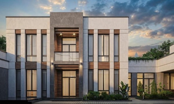 Согласно информации и фотографии от застройщика загородная вилла обладает современным дизайином и построена из качественных материалов.