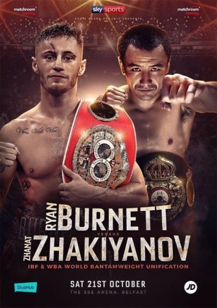 Представляем Вашему вниманию афишу боя Жанат Жакиянов — Райан Барнетт, который состоится 21 октября в Белфасте.