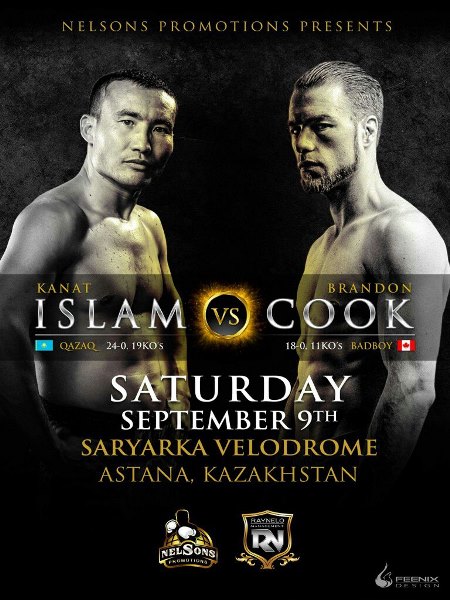 Представляем Вашему вниманию афишу вечера бокса, который состоится 9 сентября в Астане. Его главным событием станет бой между казахстанцем Канатом Исламом (24-0, 19КО) и канадцем Брэндоном Куком (18-0, 11КО), сообщает группа «Профи Бокс Казахстана» ВКонтакте.