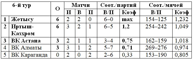Турнирное положение шестого тура: