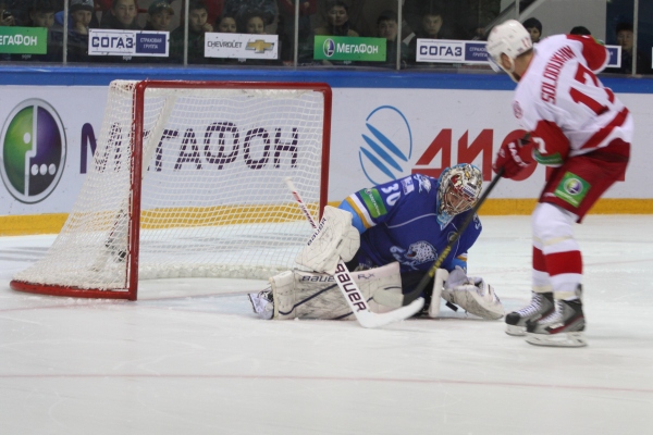 Голкипер столичного «Барыса» Ари Ахонен был признан лучшим игроком в матче против подольского «Витязя», который завершился сегодня в Астане. В серии буллитов финский вратарь не пропустил ни одной шайбы, благодаря чему столичному клубу удалось одержать победу и заработать 2 очка.