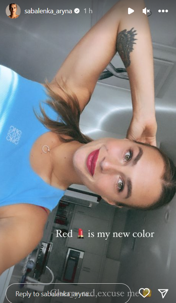 «Красный — мой новый цвет. Вишнево-красный, прости меня», — оставила Соболенко описание к фотографии, на которой она с красной помадой на губах.