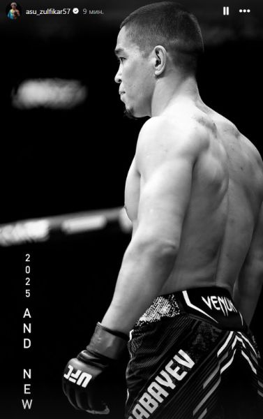 «2025 и новый...», — намекает казахстанец в сторис инстаграм на чемпионство в UFC на фоне своей фотографии в октагоне.