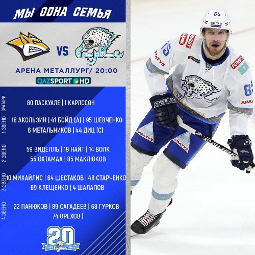 Сегодня в Магнитогорске «Барыс» проведет матч Континентальной хоккейной лиги с «Металлургом».