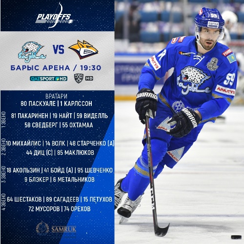 Сегодня в Нур-Султане «Барыс» проведет второй матч плей-офф Континентальной хоккейной лиги с магнитогорским «Металлургом».