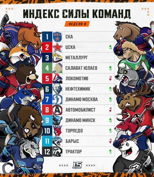 Континентальная хоккейная лига представила очередной индекс силы клубов после восьмой недели регулярного чемпионата, передает Sports.kz со ссылкой на Shaiba.kz.