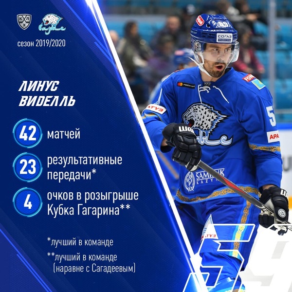 «Барыс» опубликовал на своей официальной странице «ВКонтакте» статистику нападающего Линуса Виделля в сезоне-2019/20 Континентальной хоккейной лиги (КХЛ), сообщает Sports.kz.