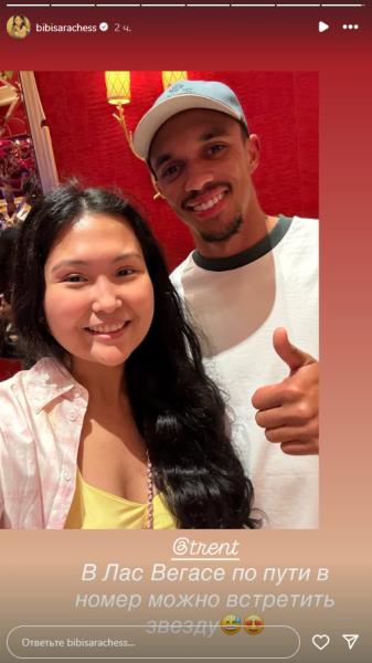 Известная казахстанская шахматистка Бибисара Асаубаева показала фото с защитником мадридского «Реала» и сборной Англии по футболу Трентом Александер-Арнольдом, передает Sports.kz.