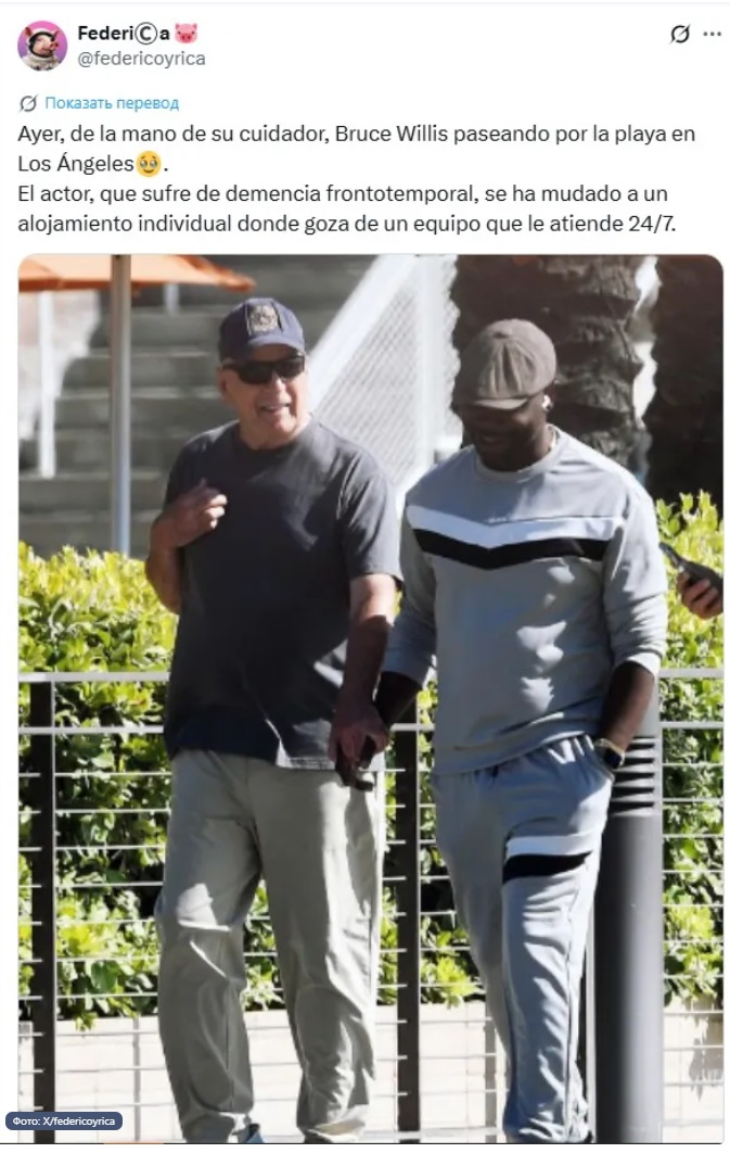 На снимках видно, как Уиллис гуляет с опекуном, держась за его руку. В какой-то момент актёр пытается сохранить равновесие, однако выглядит спокойным и, по словам очевидцев, пребывает в хорошем настроении, наслаждаясь морским воздухом и солнцем.
