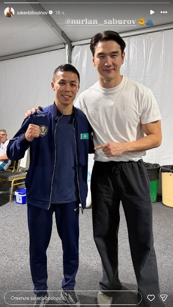 Представитель сборной Казахстана Сакен Бибосынов показал фото с популярным комиком Нурланом Сабуровым после победы на чемпионате мира IBA в Дубае (ОАЭ), передает Sports.kz.