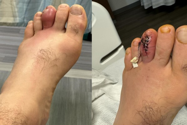 Мухаммад опубликовал фото своей ноги: на нем видно, что у него сильно опух и воспалился палец. Официальный диагноз бойца — костная инфекция стопы.