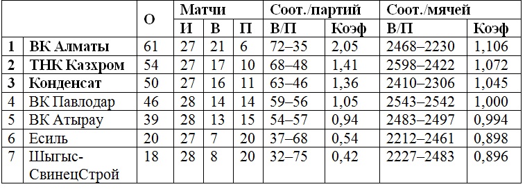 (Петропавловск), «Конденсат» (Уральск), ВК «Павлодар».