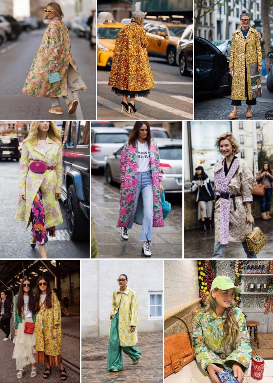 "Пыльники и пальто-халаты из фактурного жаккарда – яркий тренд. Такие легкие акцентные пальто станут незаменимым элементом в переходный период из лета в осень. Как носить? Пользуйтесь моим любимым правилом нейтрализации и стилизуйте эти броские позиции с базой. А если у вас развита насмотренность, то, наоборот, не стесняйтесь миксовать их с другими узорами, цветами и фактурами!" – подписал пост эксперт.