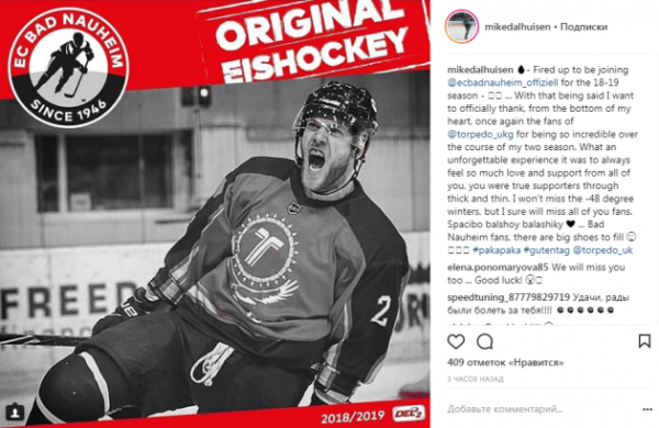 Сегодня из личной страницы экс-игрока усть-каменогорского «Торпедо» Майка Далхьюзена в Инстаграм стало известно, что этот сезон он проведет в составе немецкого клуба «Бад Ноухайм».