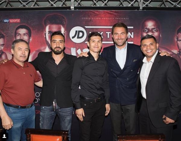 Дела отечественного спортсмена ведет известный британский промоутер Эдди Хирн, который также запечатлен на фото.