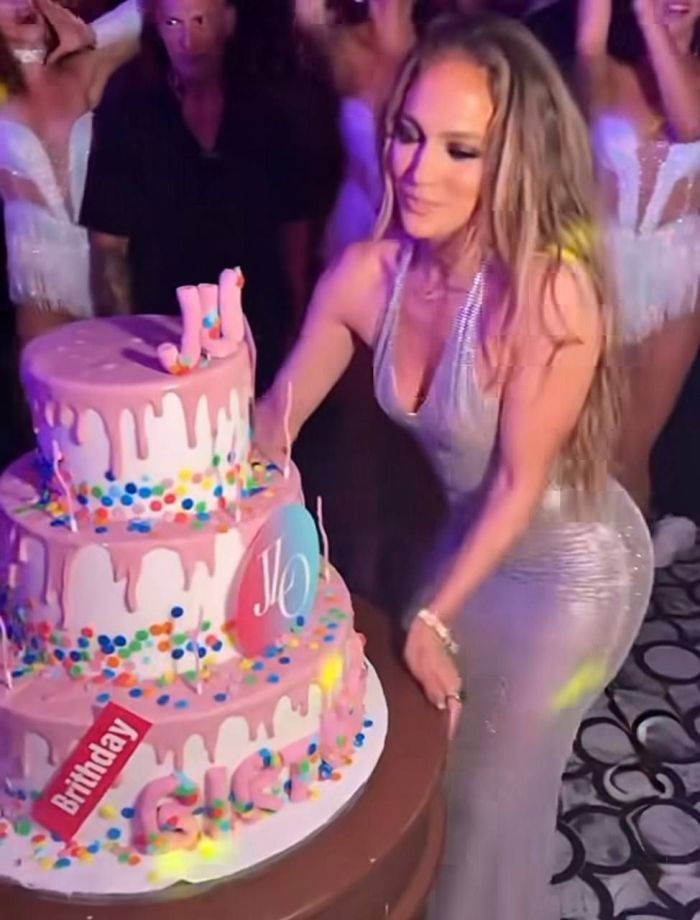 Праздник прошёл в одном из ресторанов города. Специально для Лопес местные кондитеры изготовили шикарный трёхъярусный торт. Для появления перед гостями 56-летняя именинница выбрала облегающее платье серебристого цвета с декольте и открытой спиной. Дженнифер задула свечи, танцуя под свою же песню.