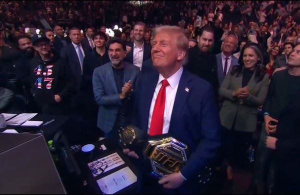 Действующий чемпион UFC в тяжёлом весе (до 120 кг) американец Джон Джонс после того, как победил американо-хорвата Стипе Миочича техническим нокаутом на турнире UFC 309 в Нью-Йорке, пожал руку и передал свой пояс бывшему президенту США Дональду Трампу, передает Sports.kz со ссылкой на Championat.com.