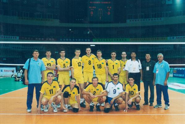 Сборная Казахстана на чемпионате Азии 2003 года в Китае. Дмитрий Горбатков сидит второй слева