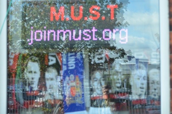 В окрестностях стадиона на Sir Matt Busby Way все также пропитано духом «Юнайтед». Здесь расположено здание Manchester United Supporters Trust или M.U.S.T. — траст болельщиков, протестующий против политики владельцев клуба — семьи американского магната Малкольма Глейзера.