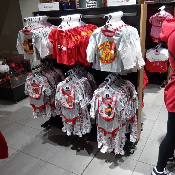 «Мегастор» или магазин мерча поражает разнообразием ассортимента. Здесь можно найти товары на любой вкус, возраст и размер. Комплекты формы: домашняя, гостевая, резервная, ретро; стандартные сувениры вроде кружек, магнитиков и брелоков; пледы, полотенца и даже домашние кофемашины, электробритвы, триммеры и плойки для волос — все с символикой «МЮ». Немало товаров для тех, кто болеет за «Красных дьяволов» еще с пеленок.