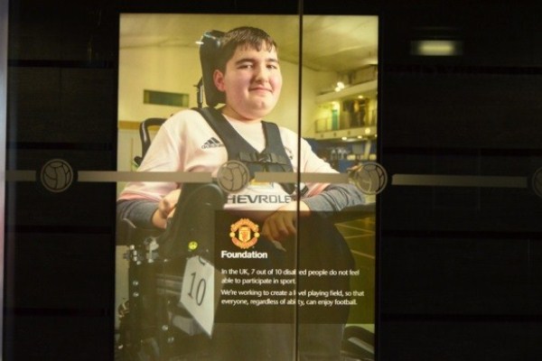 Клуб ведет активную деятельность по поддержке людей с инвалидностью, о чем информирует один из стендов.