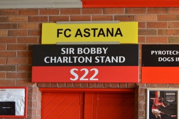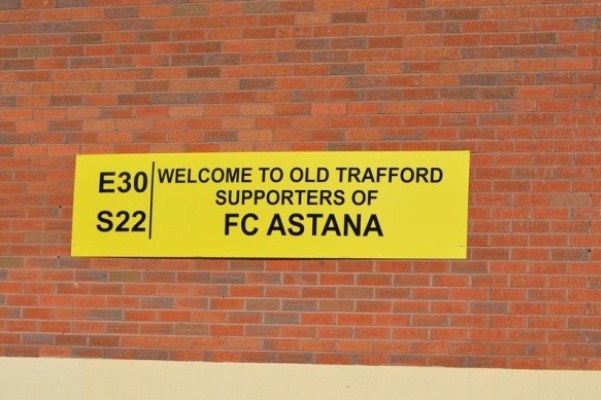 Тем не менее, «Олд Траффорд» уже готов принимать гостей из Казахстана: со стороны трибуны имени сэра Бобби Чарльтона прикреплены таблички с надписью «Добро пожаловать на „Олд Траффорд“, болельщики „Астаны“».