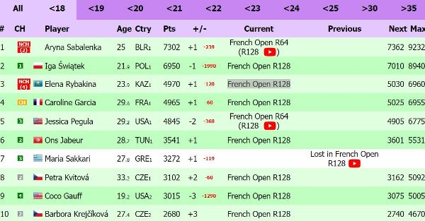 Отметим, что WTA внесет изменения в официальный рейтинг по итогам «Ролан Гаррос».