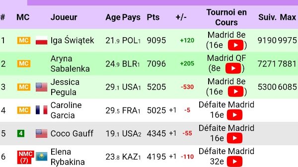 Согласно live-рейтингу WTA, представленном на сайте Live-tennis.eu, Рыбакина переместится с седьмой на шестую строчку, что станет наивысшим показателем в карьере казахстанской теннисистки.