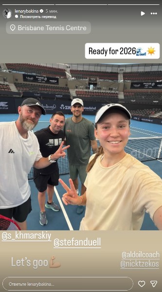 «Готовы к 2026 году. Вперед!» — написала Рыбакина в «сторис» инстаграма, прикрепив командное фото с одного из кортов Брисбена.