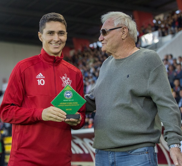 Форвард «Кайрата» получил памятный приз из рук Почетного деятеля ПФЛК Михаила Гурмана, а в Актобе награждение провел ветеран актюбинского футбола Анатолий Побирский.
