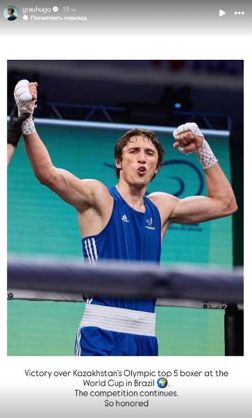 «Победа над олимпийским топ-5 боксёром из Казахстана на Кубке мира в Бразилии. Соревнования продолжаются. Это большая честь», — написал Грау в соцсети.