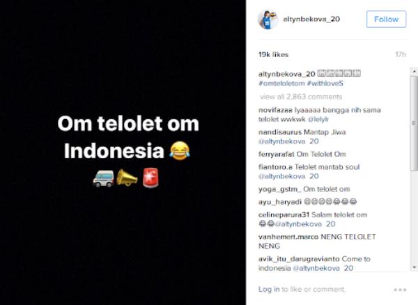 «Да, я знаю, и я действительно люблю их (фанатов из Индонезии). Я благодарю Аллаха за поддержку, которую оказывают мне индонезийцы», — сказала Алтынбекова.