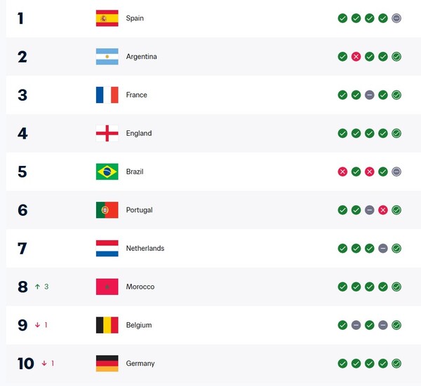 Согласно обновлённым данным, сборной Марокко была присуждена победа в последнем официальном матче против Сенегала. При этом итоговый счёт встречи в рейтинге не уточняется. Благодаря этому марокканская команда поднялась на восьмое место в рейтинге FIFA, обойдя сборные Германии и Бельгии.