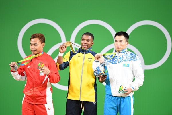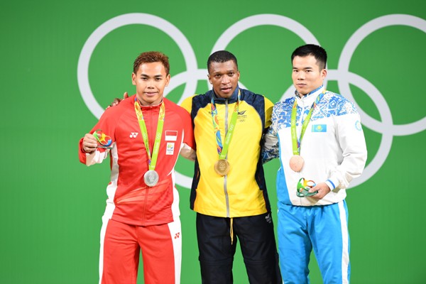 Представляем Вашему вниманию фото с награждения бронзового призера Олимпиады-2016 казахстанского тяжелоатлета Фархада Харки.