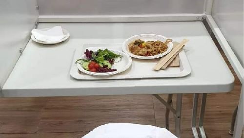 В олимпийской деревне Чжанцзякоу спортсмены и тренеры в олимпийской деревне едят практически в отдельных кабинках. Видимо, чтобы не только не заразиться COVID-19, но и не отвлекаться во время еды.