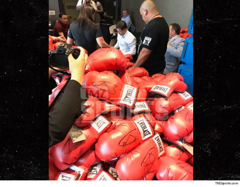 Перчатки с подписями Геннадия Головкина и Сауля Альвареса будут