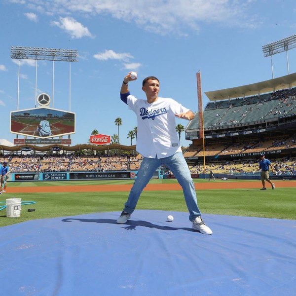 Казахстанский боксер Геннадий Головкин произвел торжественное вбрасывание в матче Главной лиги бейсбола (MLB) между «Лос-Анджелес Доджерс» — «Колорадо Рокис», сообщает группа «Профи Бокс Казахстана» ВКонтакте.