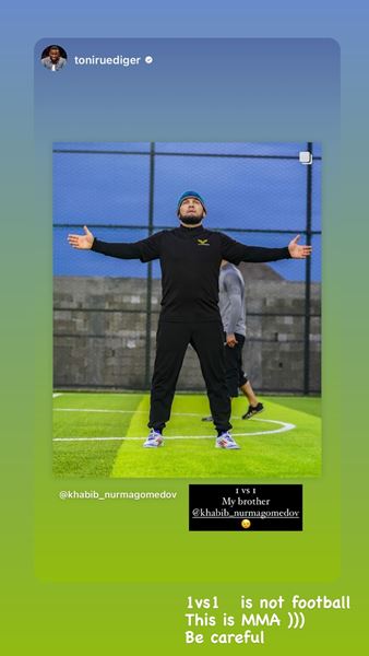 «Один на один? Это не футбол, а MMA, будь осторожнее», — ответил ему в том же духе Хабиб.