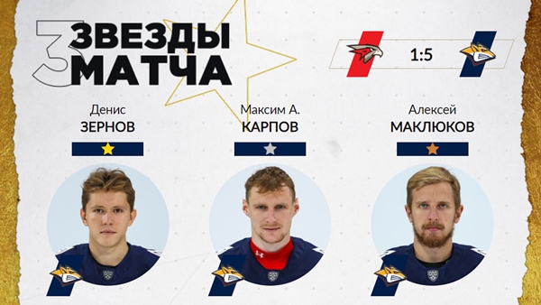 Казахстанский защитник «Магнтики» Алексей Маклюков третий матч подряд набрал очки, отметившись двумя голевыми пасами, и был признан третьей звездой матча.