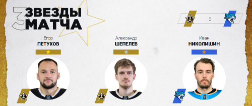 Нападающий астанинской команды Иван Николишин признан третьей звездой встречи. Он забросил шайбу, которая сравняла счёт и позволила набрать одно очко.