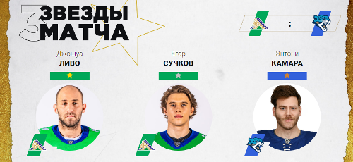 Форвард астанинцев Энтони Камара в этой встрече забросил шайбу и сделал голевую передачу и был признан звездой матча.