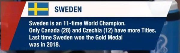 Во время трансляции матча ЧМ-2024 Швеция — США на экране появился титр, на котором были указаны самые титулованные сборные в истории мирового первенства. «Швеция — 11-кратный чемпион мира. Только Канада (28) и Чехия (12) выигрывали больше титулов», — говорится в тексте. Скриншот можно посмотреть ниже.