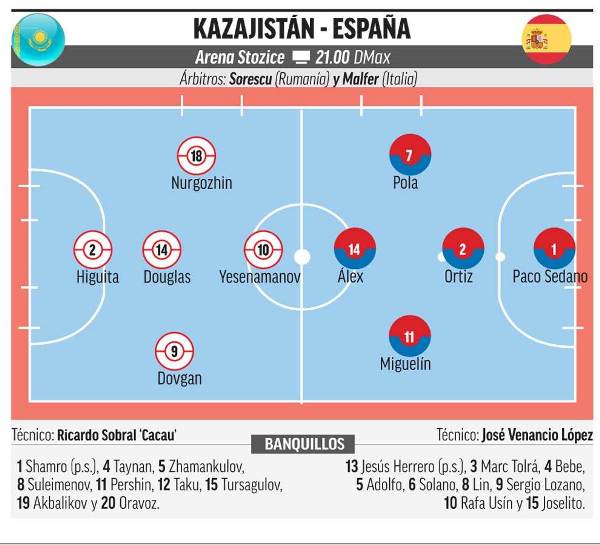 Испанская газета Marca предположила, какими стартовыми пятерками начнут полуфинальный матч чемпионата Европы по футзалу сборные Казахстана и Испании, сообщает Sports.kz.