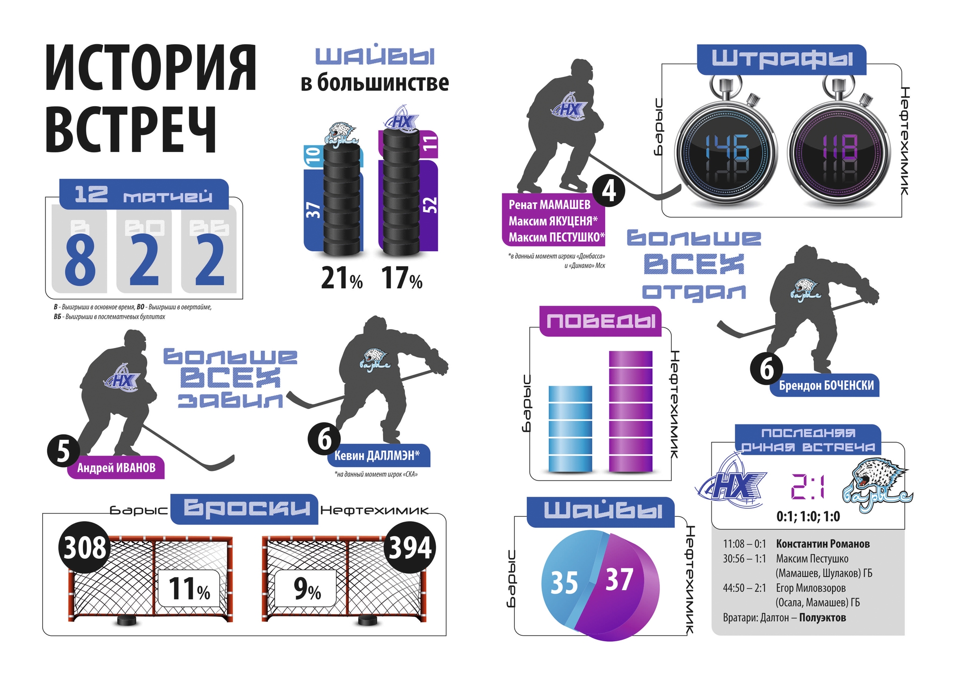 Представляем Вашему вниманию историю встреч команд КХЛ «Барыс» — «Нефтехимик».