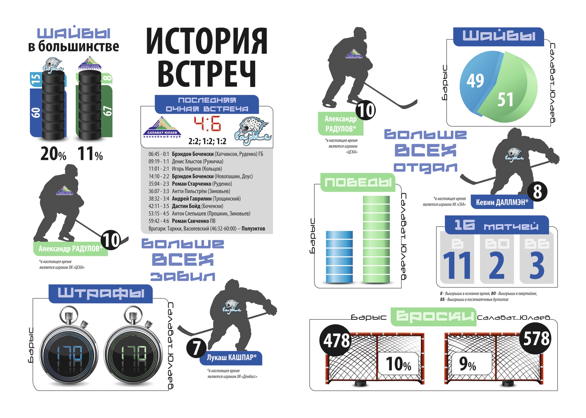 Представляем Вашему вниманию историю встреч команд КХЛ «Барыс» — «Салават Юлаев».