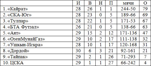 27 — Ирсалиев («БТА Футзал»), Стренев («Аят»), А.Торетаев («ОзенМунайГаз»)