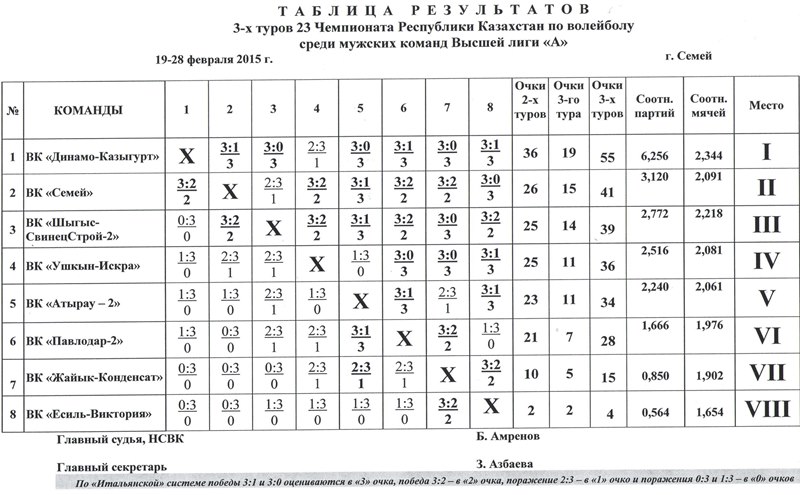 В Семипалатинске прошел 3-й тур XXIII Чемпионата РК по волейболу среди мужских команд Высшей Лиги «А». Напомним, что игры группы «Б» прошли в Алматы.