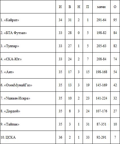 Голы: Фумаса 2, 17, 27, Лео Сантана 3, Жоан 4, Смаков 27, Мурзабаев 31,